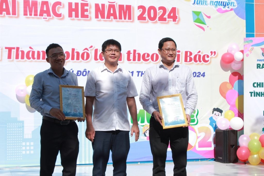 Ngay tại buổi lễ, Phòng Thanh tra và Chi đoàn Giảng viên – Người lao động 1 Trường Đại học Nguyễn Tất Thành đã trao tặng 10 suất học bổng (trị giá 500.000đ/1 suất), Ban Chỉ đạo Hè phường trao tặng 20 cặp học sinh cho các em học sinh có hoàn cảnh khó khăn và hơn 800 phần quà cho các em thiếu nhi trên địa bàn phường.