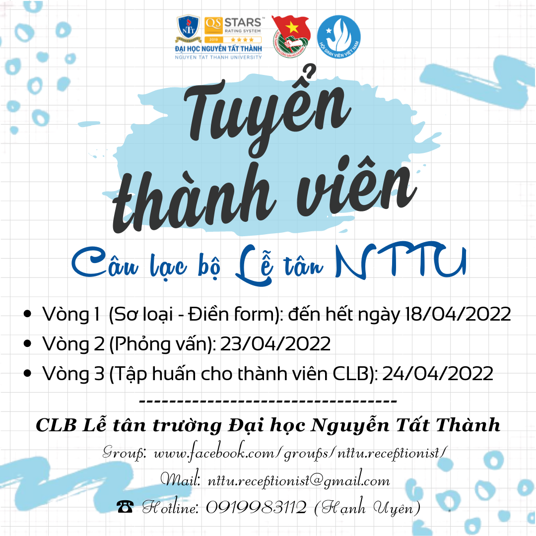 Mong rằng bạn sẽ sớm trở thành 1 mảnh ghép của CLB Lễ tân trường Đại học Nguyễn Tất Thành