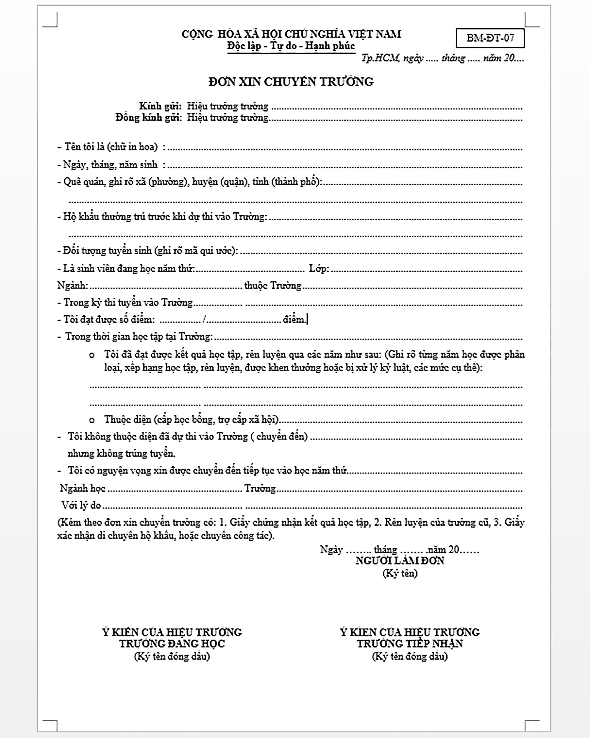 Trang chủ / Góc sinh viên / Đơn xin chuyển trường Đơn xin chuyển trường ntlam / 1:54 pm 21/09/2021 Bấm vào đây để tải biểu mẫu Danh mục Góc cảnh giác Mẹo vặt/Kỹ năng sống Nhắc nhở hằng ngày Tin liên quan BIểu mẫu công tác sinh viên 12/09/2022 Phiếu tự khai thông tin sinh viên 26/07/2022 PHIẾU ĐỀ NGHỊ CHỈNH SỬA THÔNG TIN CÁ NHÂN – Áp dụng cho các trường hợp không có minh chứng đính kèm 05/04/2022 Đơn đề nghị cấp mới thẻ Ban cán sự lớp 21/09/2021 Mẫu đơn xin nghỉ học BH-HV-07 21/09/2021