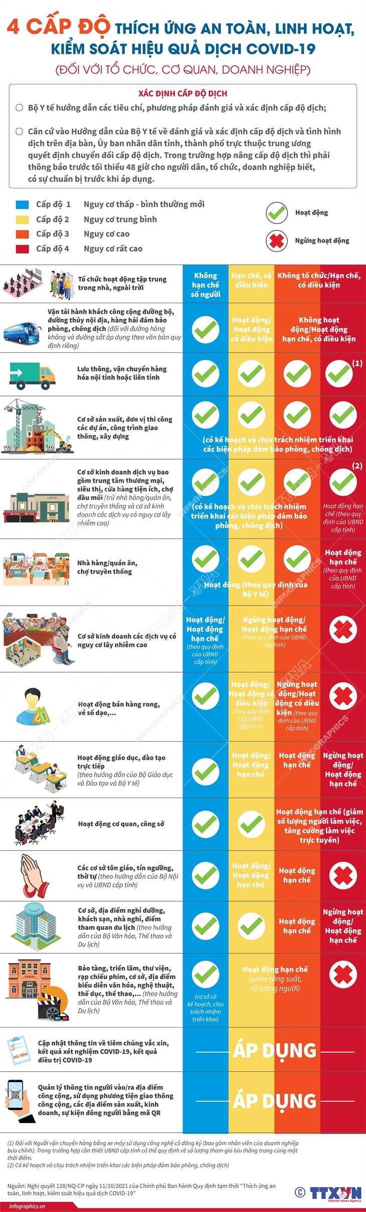 INFOGRAPHIC: BỐN CẤP ĐỘ “THÍCH ỨNG AN TOÀN” VỚI DỊCH COVID-19