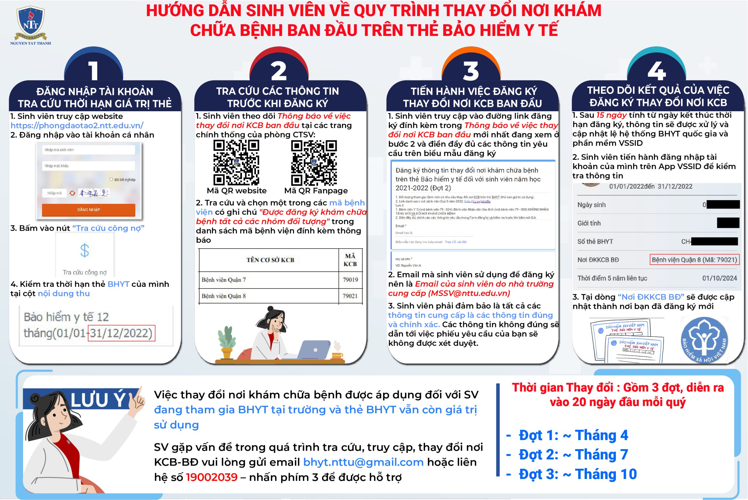 [INFOGRAPHIC] HƯỚNG DẪN SINH VIÊN VỀ QUY TRÌNH THAY ĐỔI NƠI KHÁM CHỮA BỆNH BAN ĐẦU TRÊN THẺ BẢO HIỂM Y TẾ