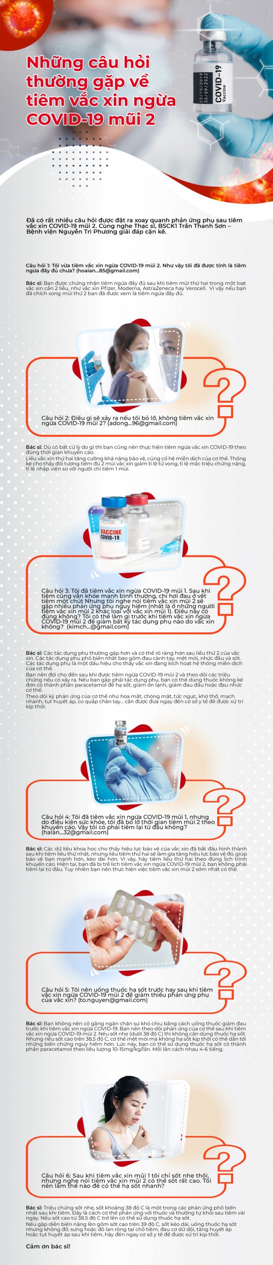 Đã có rất nhiều câu hỏi được đặt ra xoay quanh phản ứng phụ sau tiêm vắc xin COVID-19 mũi 2. Cùng nghe thạc sĩ, BSCK1 Trần Thanh Sơn – Bệnh viện Nguyễn Tri Phương (TP.HCM) giải đáp cặn kẽ.