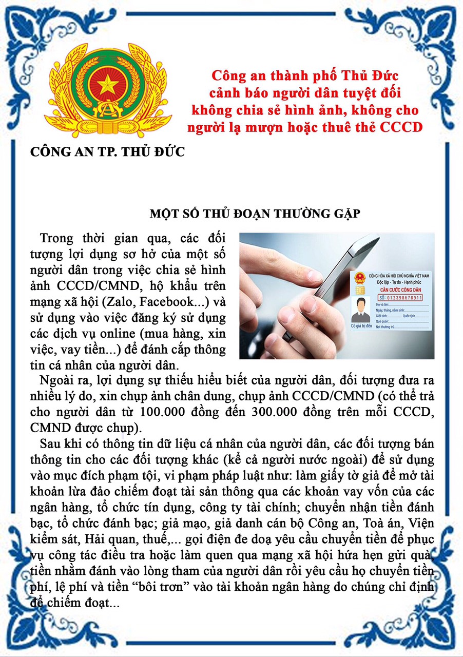 Thời gian gần đây, nhiều bạn sinh viên cùng già đình và người thân trên địa bàn thành phố đang gặp tình trạng người lạ trả tiền (từ 100.000 – 300.000 đồng) để chụp 2 mặt CMND/CCCD hoặc chiếm đoạt/ mua lại các thông tin này từ việc cung cấp thông tin trên các tổ chức/ dịch vụ trang mạng xã hội không có cam kết đảm bảo an toàn thông tin cho người dùng.