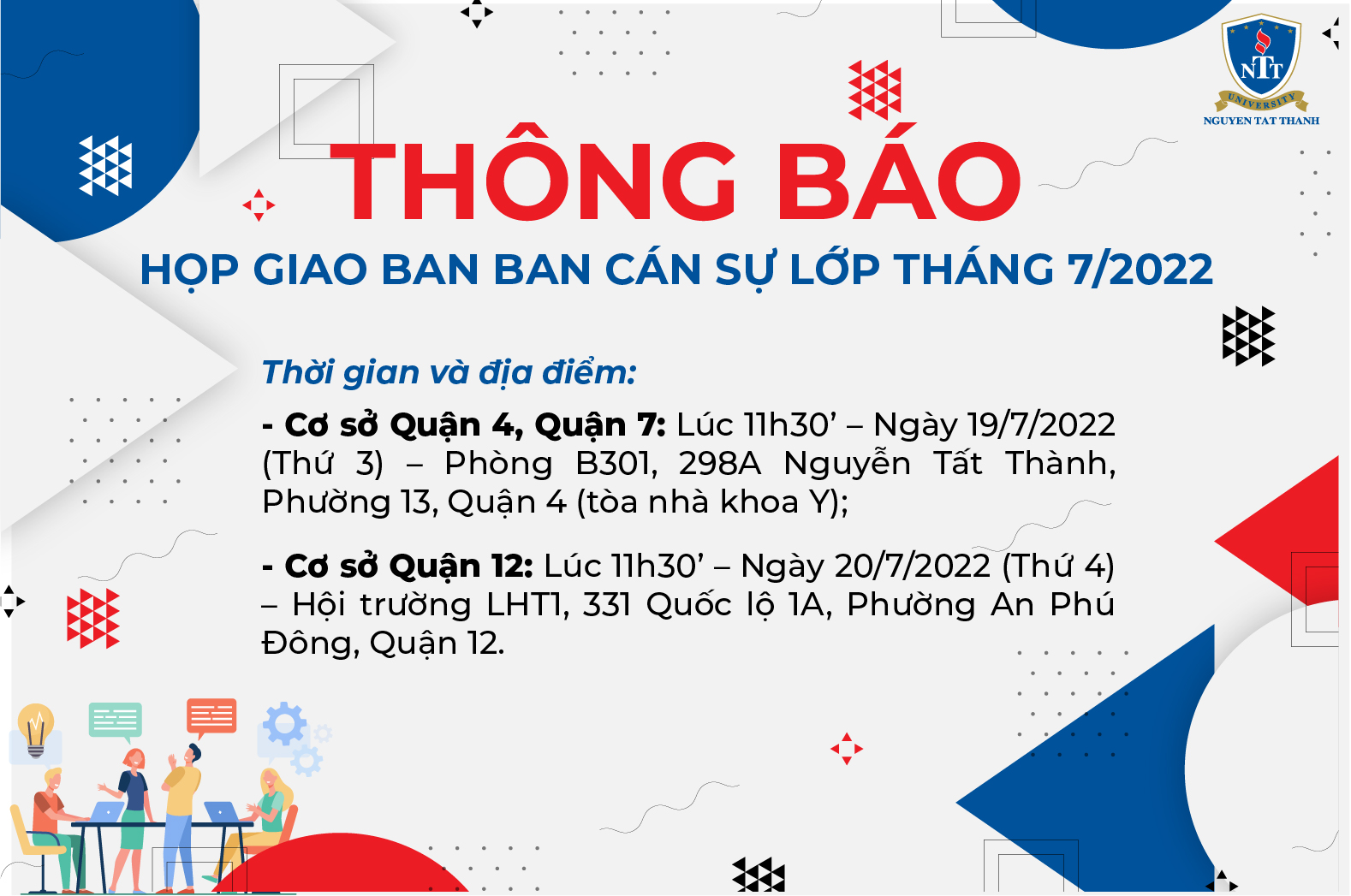 Phòng Công tác sinh viên thông báo lịch họp giao ban Ban Cán sự lớp tháng 7/2022, thời gian và địa điểm cụ thể như sau:
