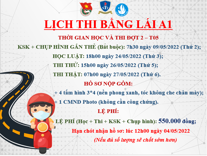 HẠN CHÓT ĐĂNG KÝ A1 - ĐỢT 2 - Tháng 05: Lúc 12h00' ngày 04/05/2022 (tuy nhiên, có thể sớm hơn nếu đủ số lượng thí sinh đăng ký).