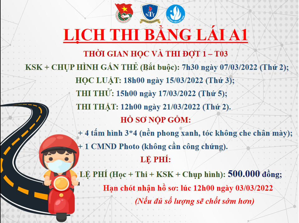 Cập nhật lịch thi mới nhất cho các bạn có nhu cầu điều khiển xe máy, ô tô cho sinh viên NTTU