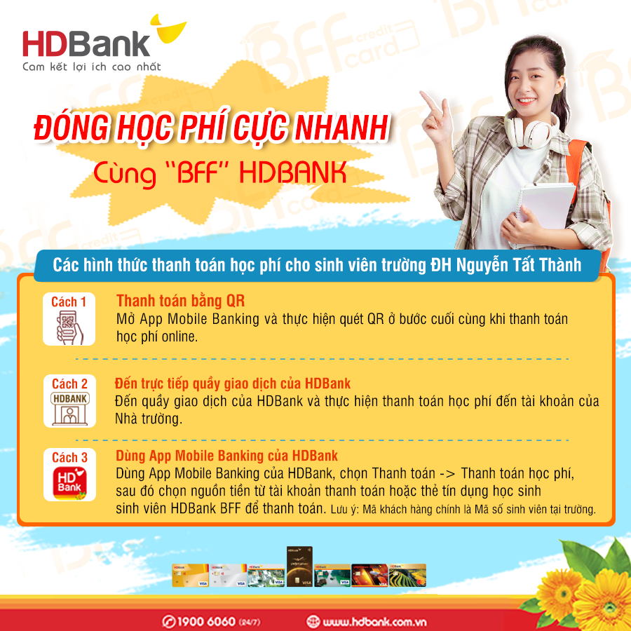 NTTU phối hợp với HDBank tạo ra một hệ thống các kênh thanh toán học phí cực dễ dàng dành cho sinh viên, với các hình thức sau: