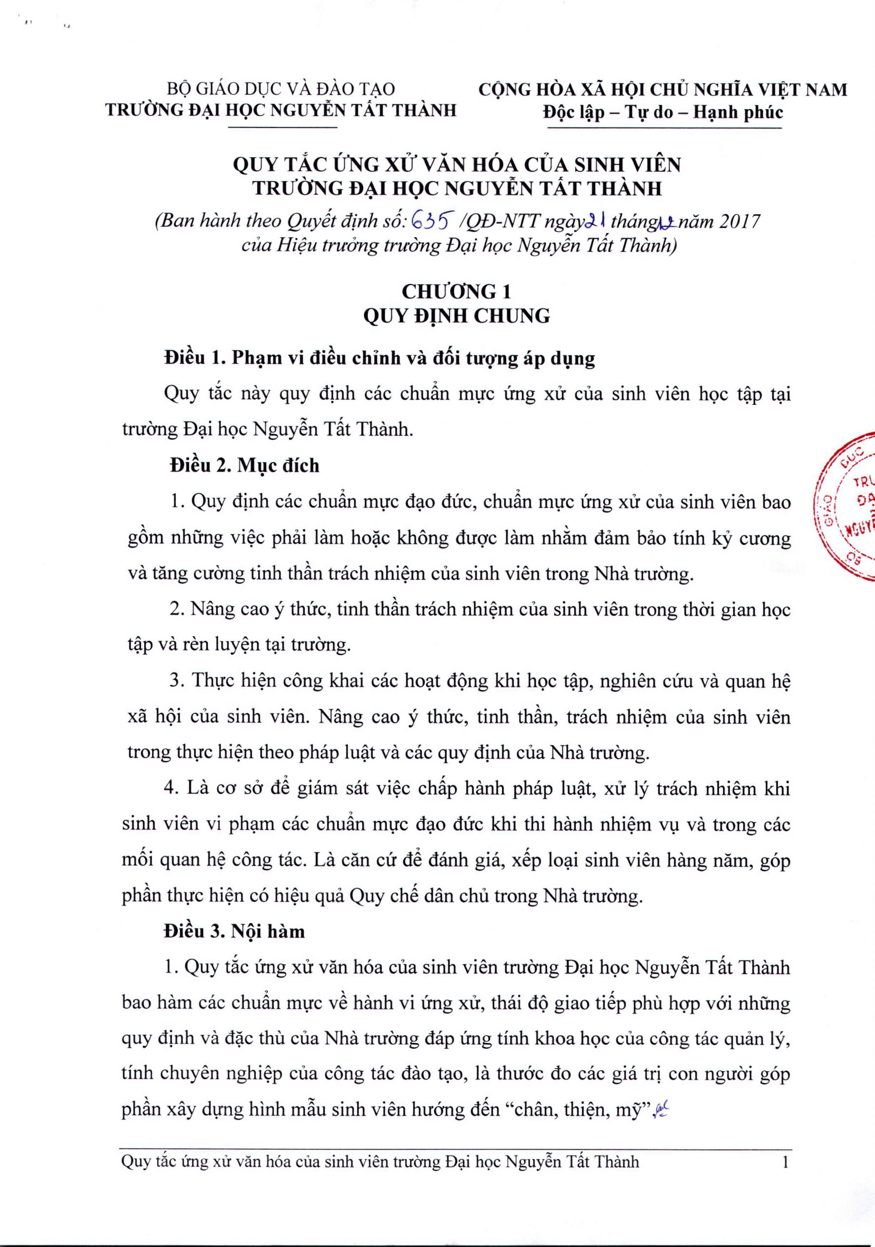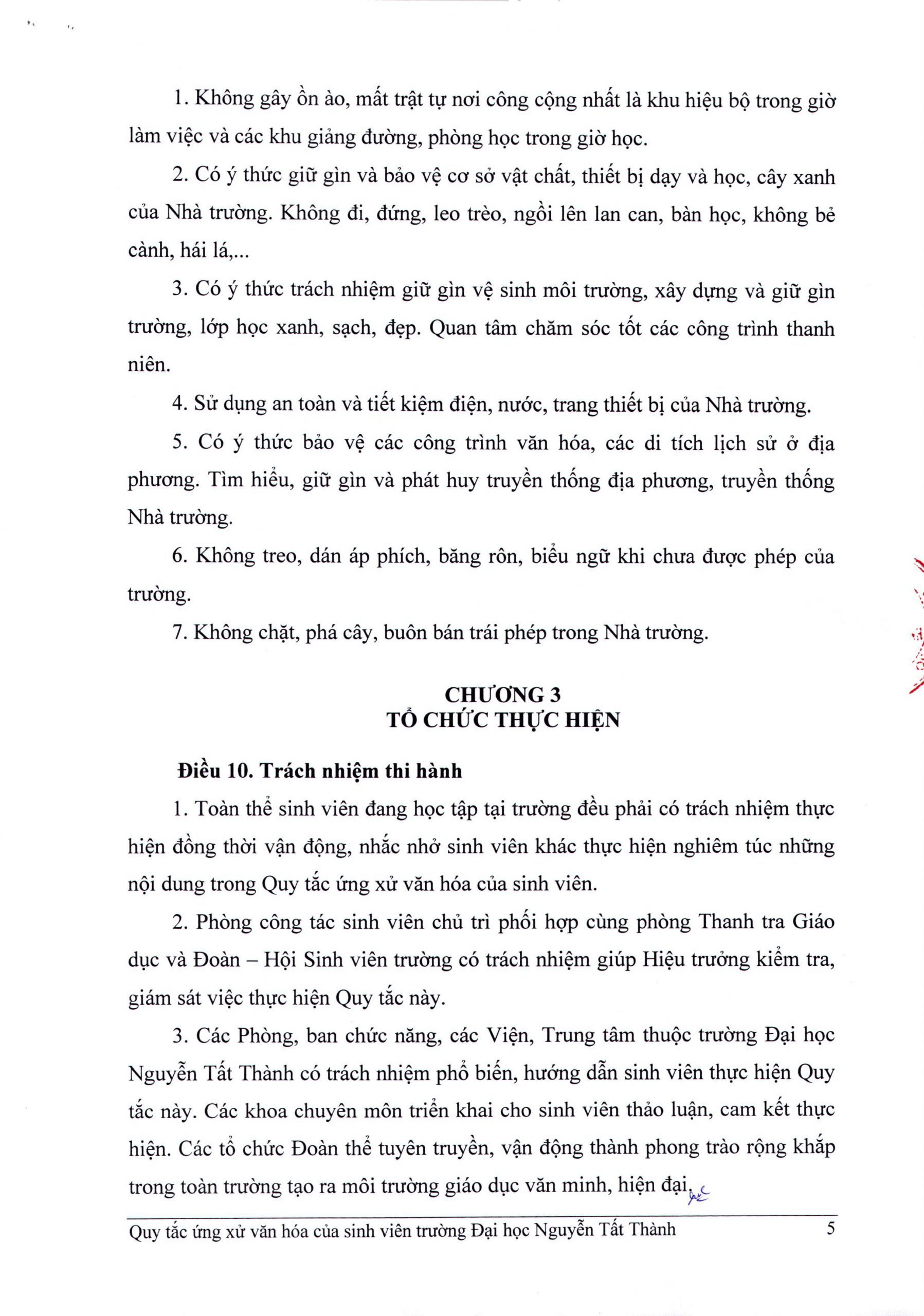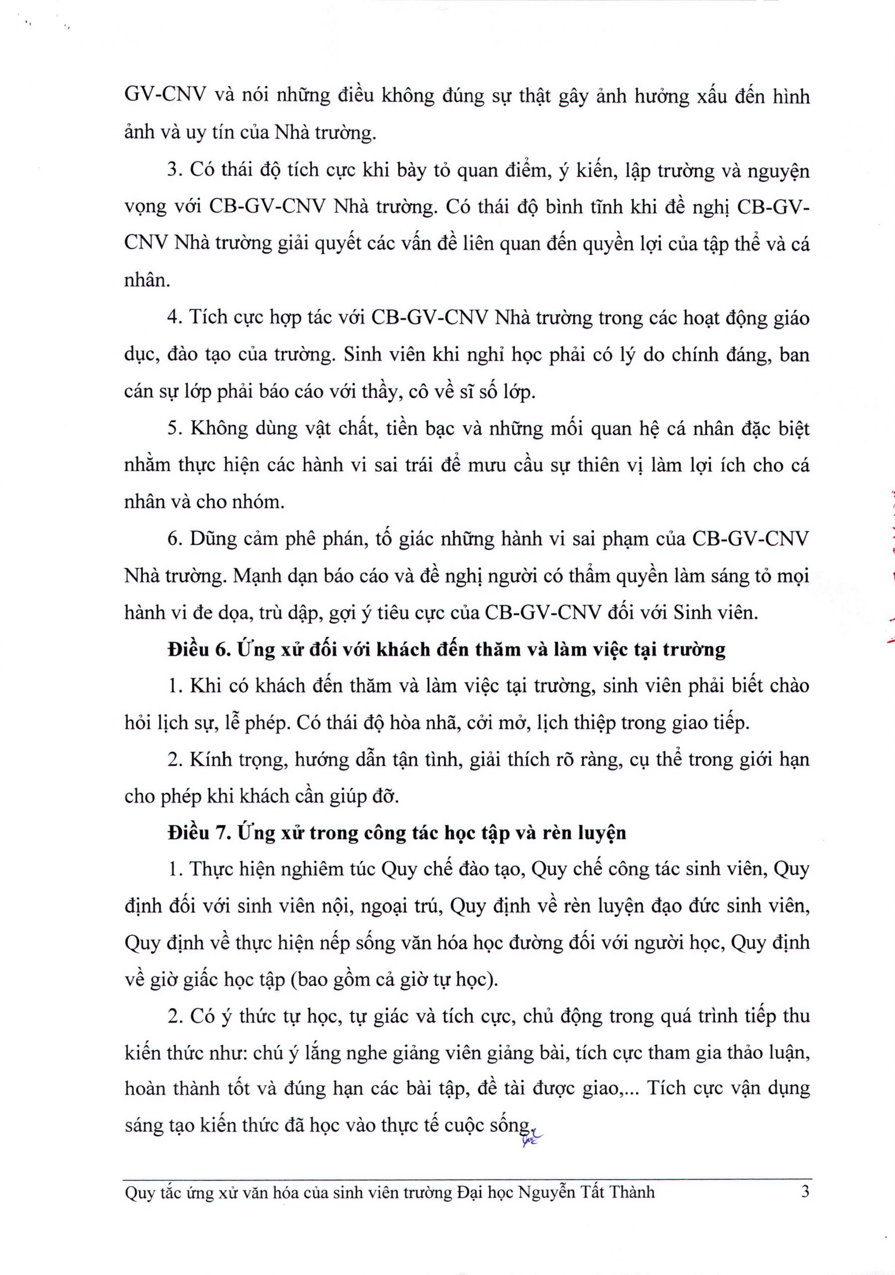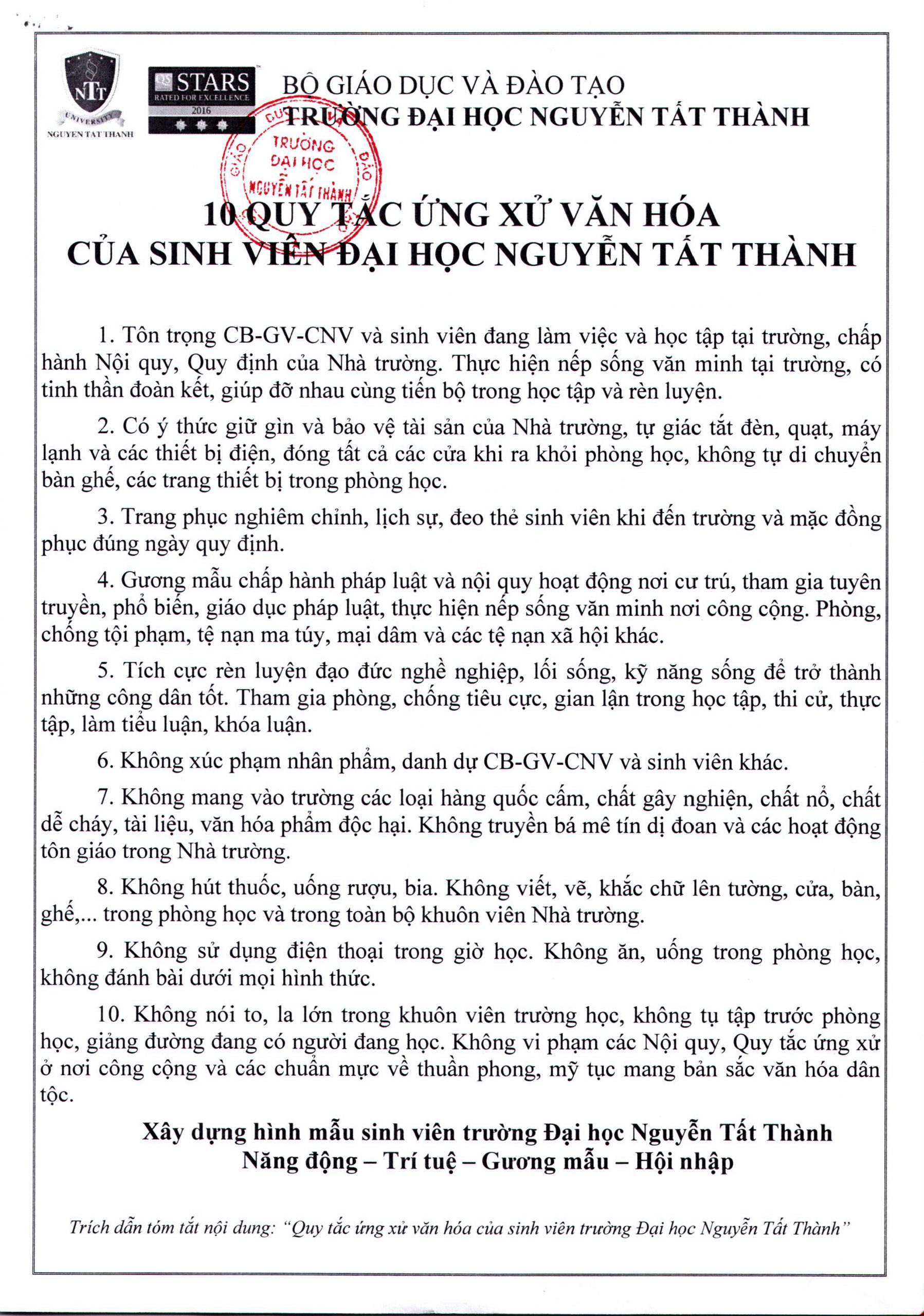 Quy tắc ứng xử văn hóa của sinh viên Trường Đại học Nguyễn Tất Thành