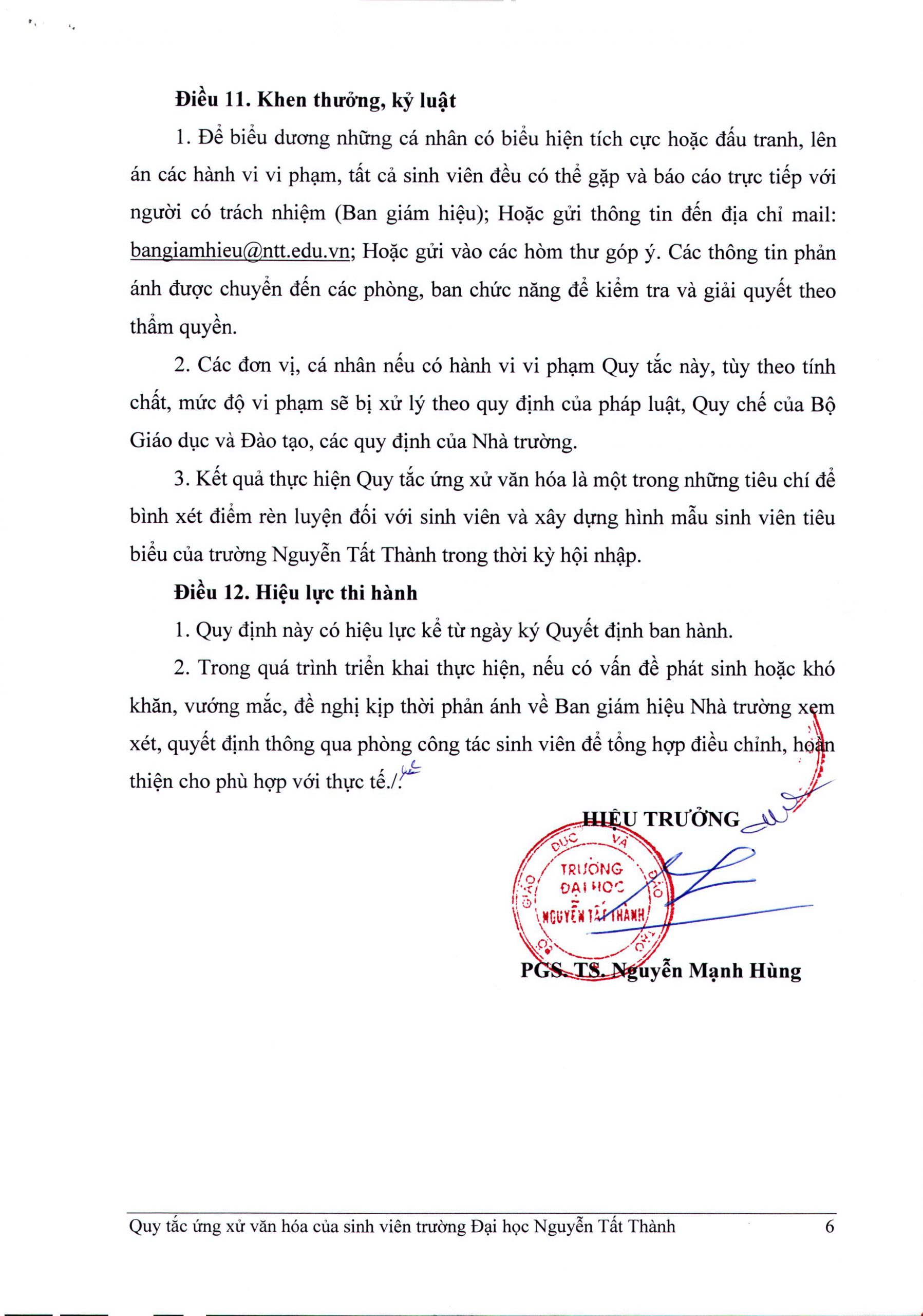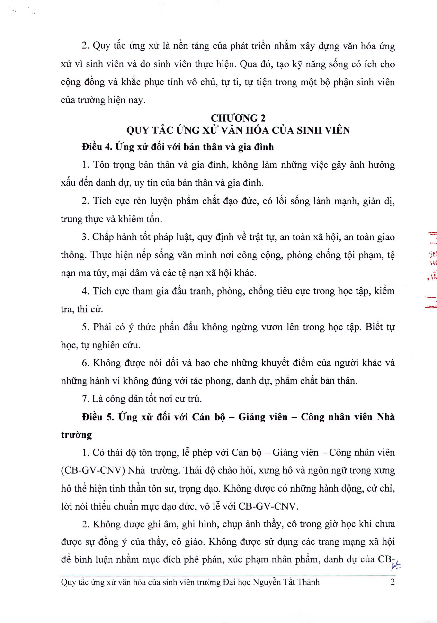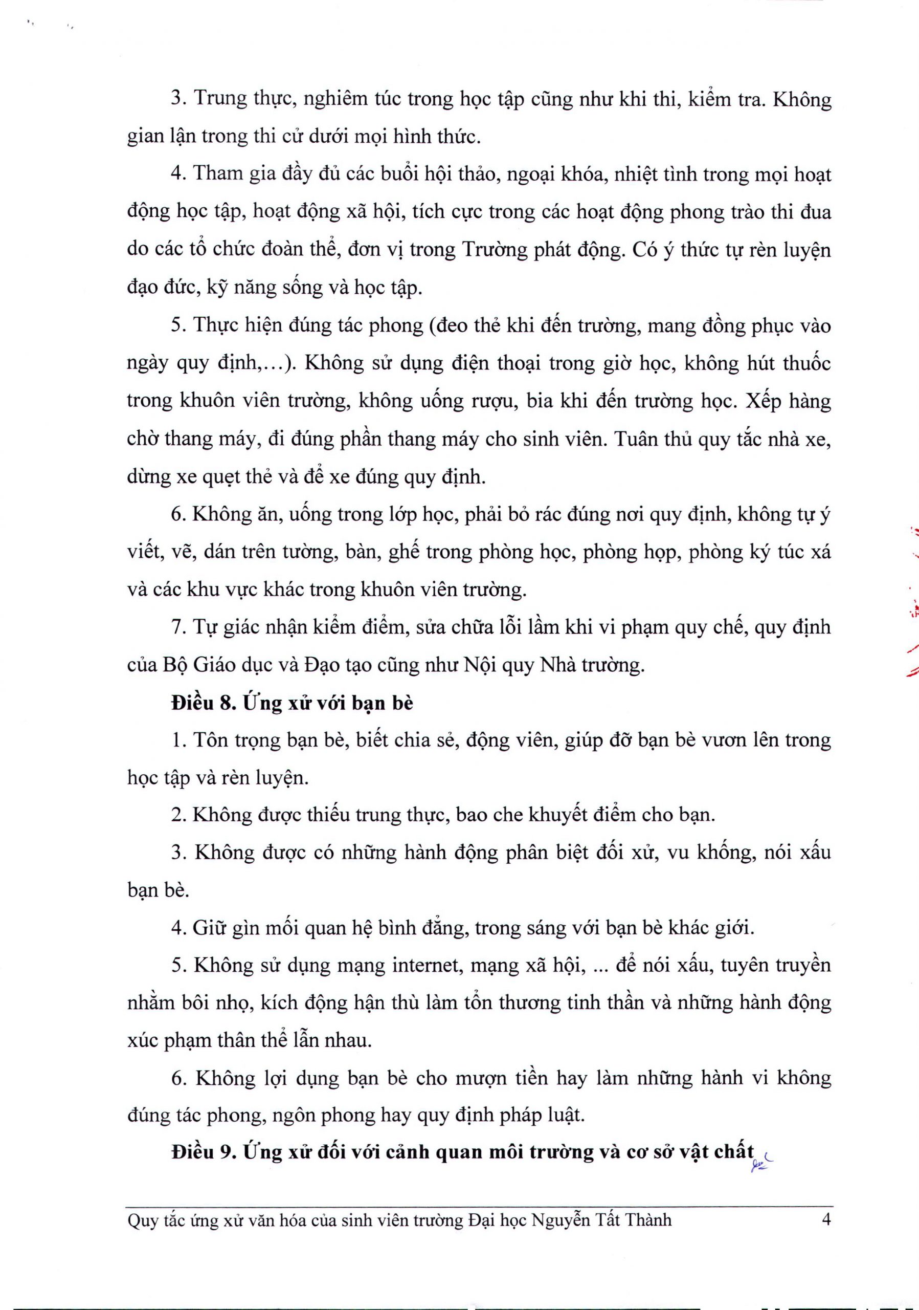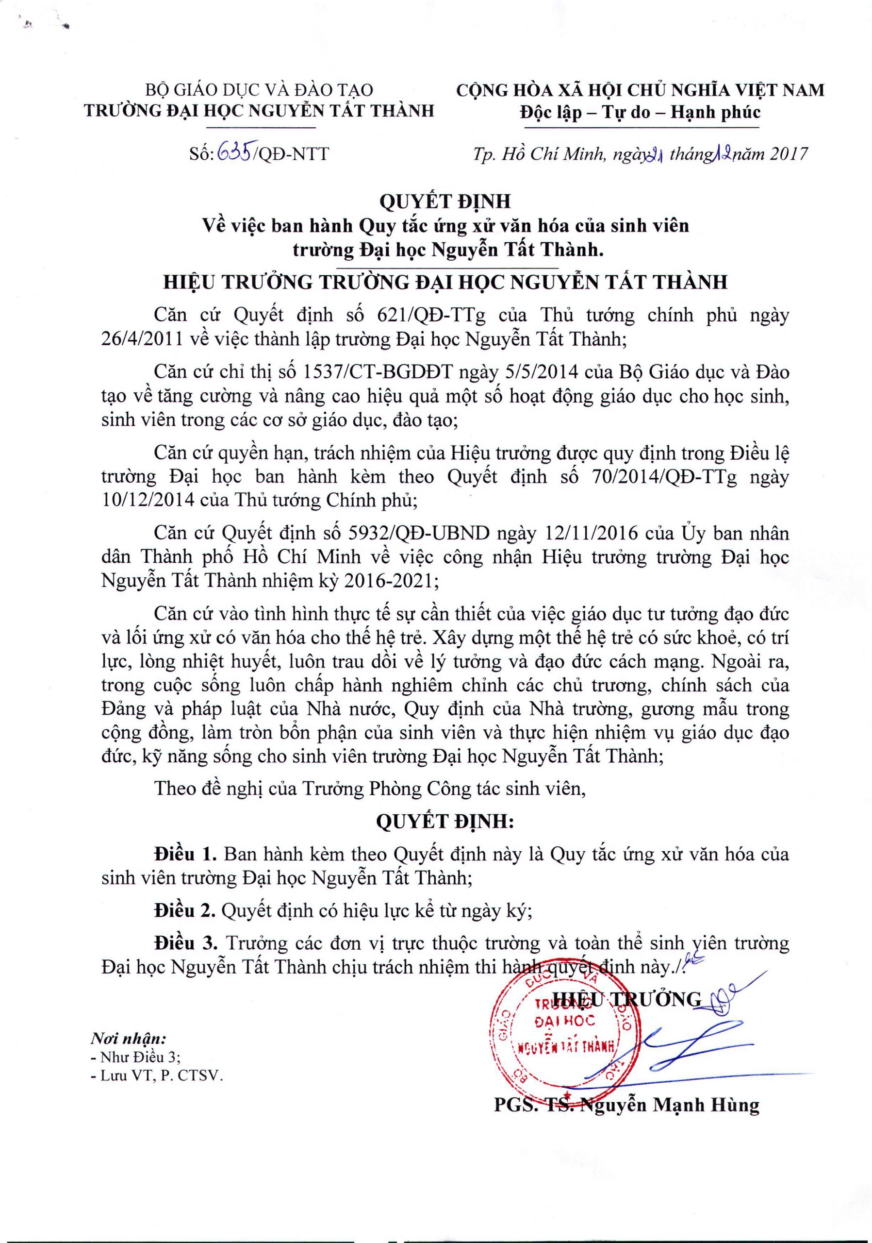 Quy tắc ứng xử văn hóa của sinh viên Trường Đại học Nguyễn Tất Thành