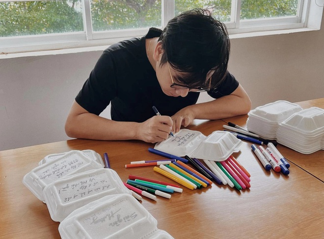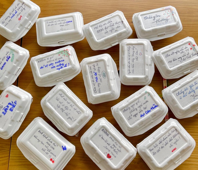 Ý tưởng của những hộp cơm “biết nói năng” này là nhiếp ảnh Phạm Phúc Lợi, giảng viên khoa Du lịch và Việt Nam học, ĐH Nguyễn Tất Thành. Anh tham gia vào nhóm “Bếp yêu thương”, mỗi ngày nấu mỗi nấu khoảng 300 – 400 suất cơm gửi tặng F0, y bác sĩ tại bệnh viện dã chiến.