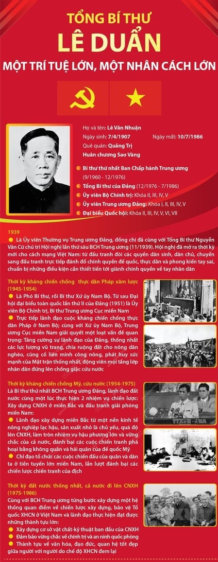 [INFOGRAPHIC] TỔNG BÍ THƯ LÊ DUẨN: MỘT TRÍ TUỆ LỚN, MỘT NHÂN CÁCH LỚN