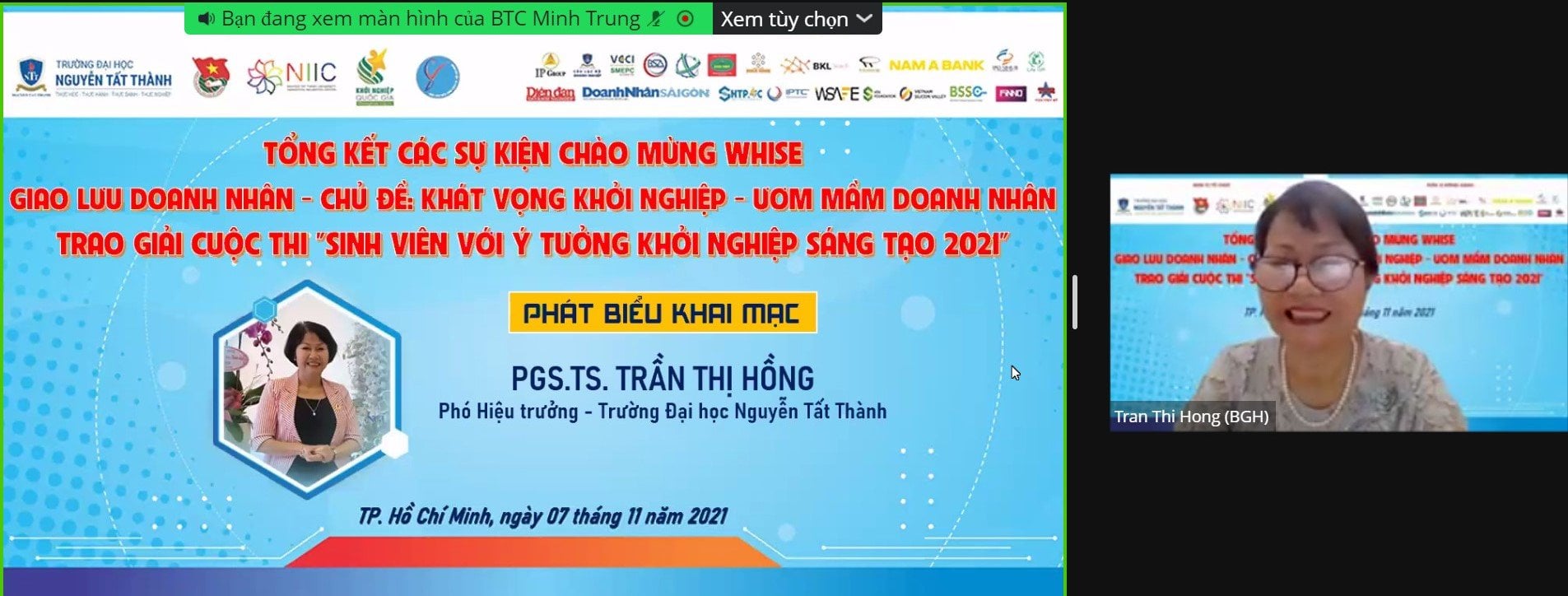 Ngày 7 tháng 11 vừa qua, hòa trong không khí sôi nổi chào mừng Tuần lễ đổi mới sáng tạo của TP.HCM WHISE 2021, chương trình diễn ra với sự quan tâm đông đảo của các bạn sinh viên yêu thích khởi nghiệp. Về tham dự chương trình trân trọng có sự góp mặt PGS.TS Trần Thị Hồng – Phó hiệu trưởng trường ĐH Nguyễn Tất Thành; đại diện ban lãnh đạo các khoa, viện; đại diện các đơn vị đối tác, nhà tài trợ; quý giảng viên hướng dẫn cùng các sinh viên thuộc Top11 các dự án đạt giải và hơn 300 sinh viên đang học tập tại trường.