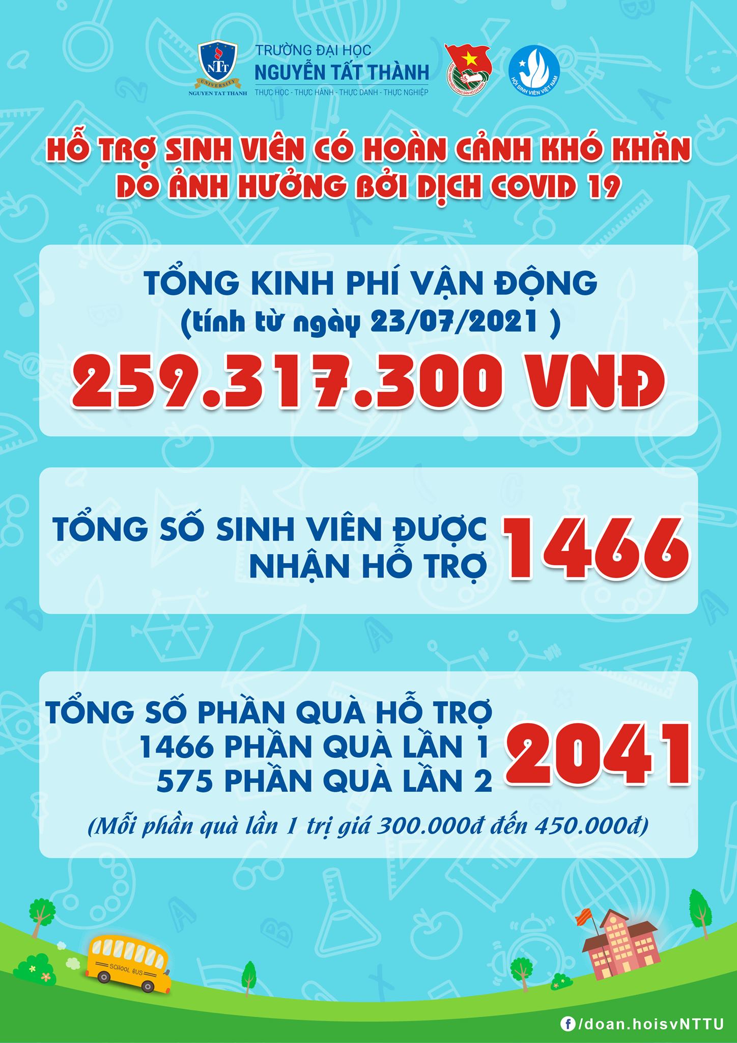 Nay Đoàn TN – Hội SV trường công bố cụ thể kinh phí vận động và danh sách sinh viên nhận quà tính từ ngày phát động quyên góp 23/07/2021 đến nay như sau: