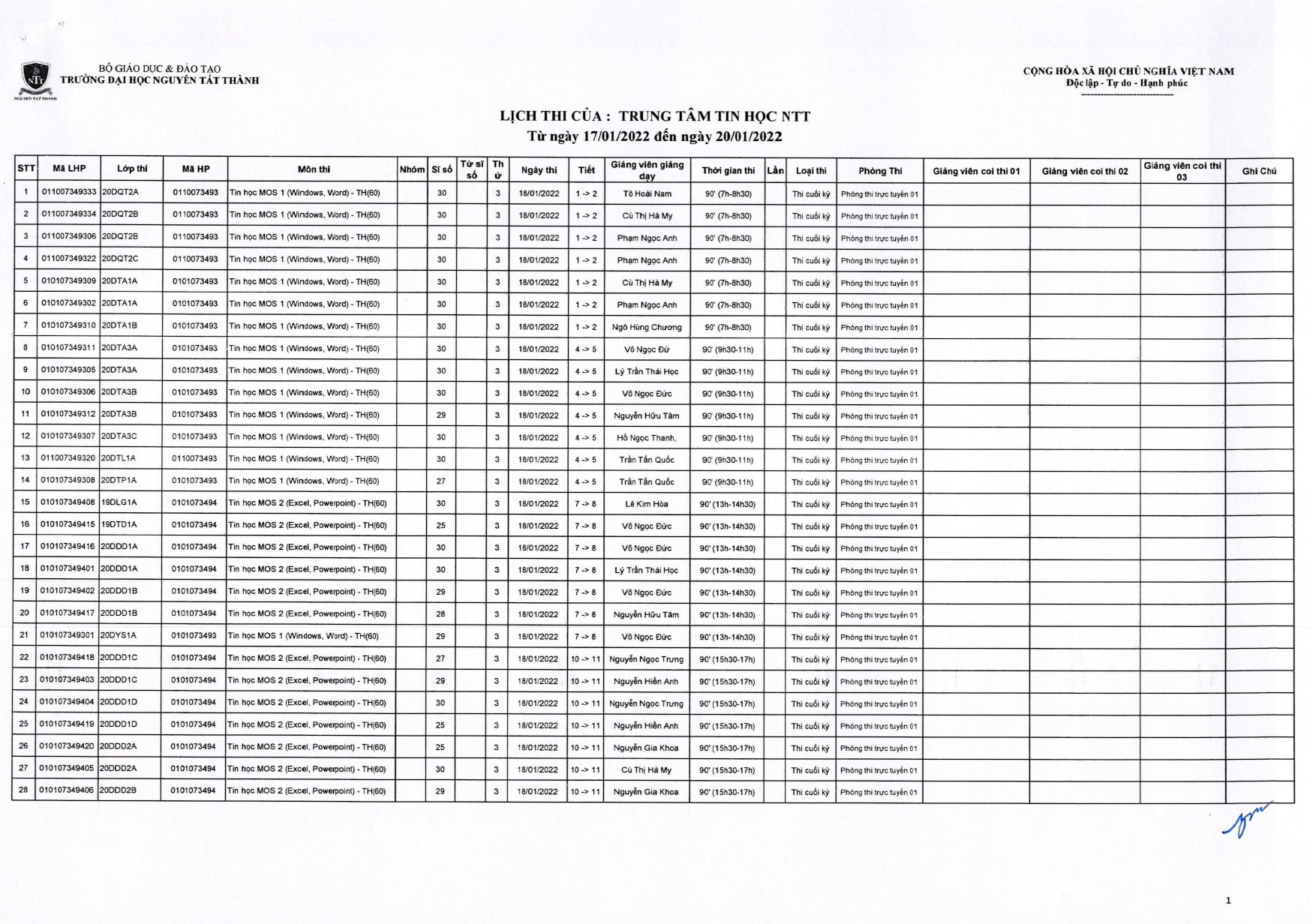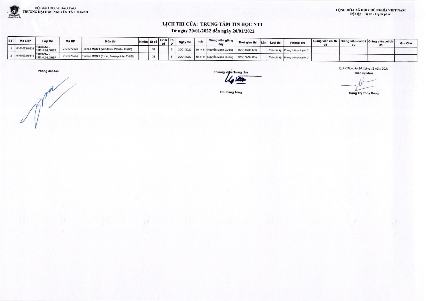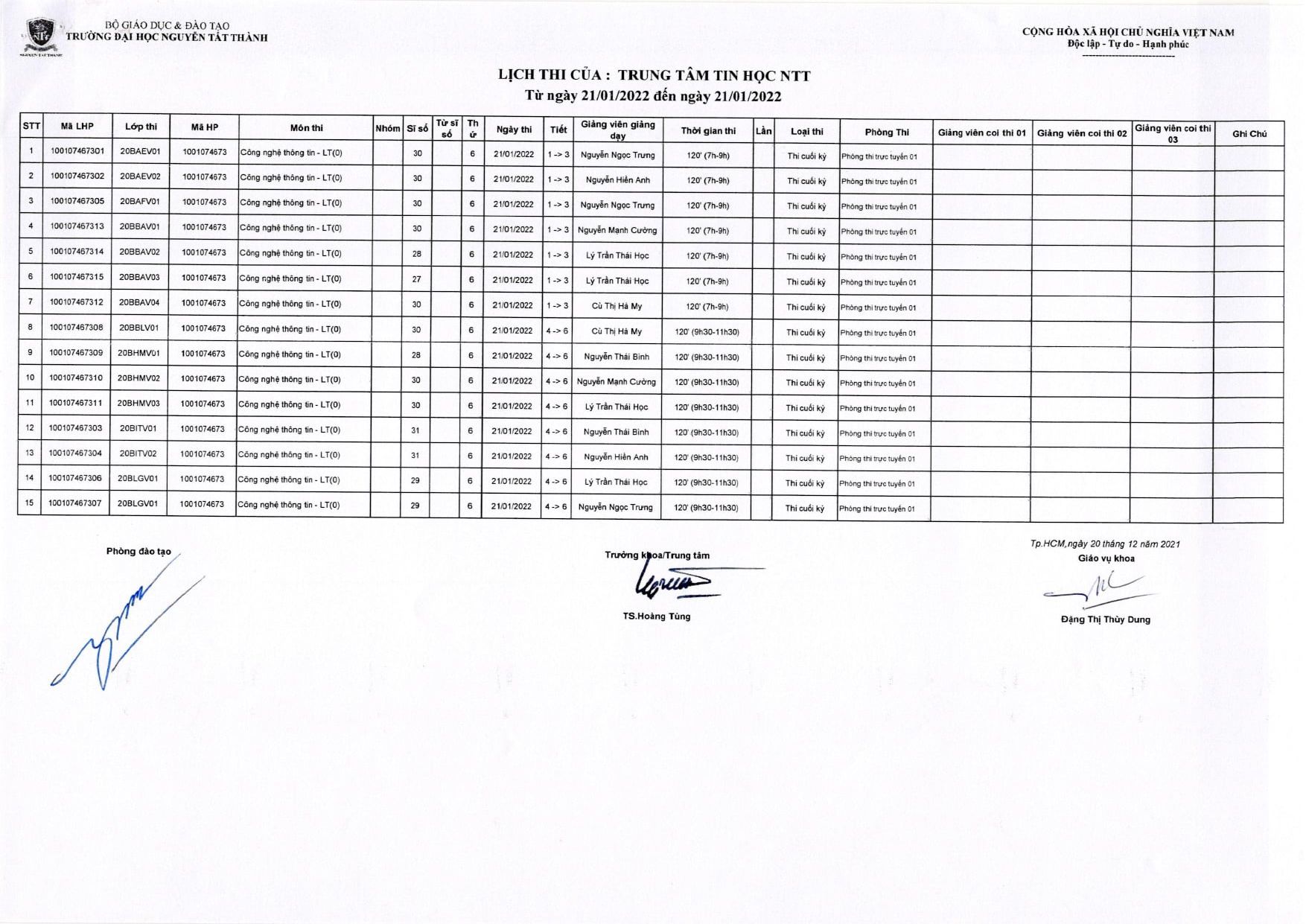 1. Sinh viên kiểm tra lịch thi CÁ NHÂN, không xem lịch thi theo lớp học phần Để biết mình có bị cấm thi (Do thiếu hoặc không đạt các bài kiểm tra hoặc chưa đóng học phí) hay không (Kiểm tra lịch từ ngày (08/01/2022 – 14/01/2022)