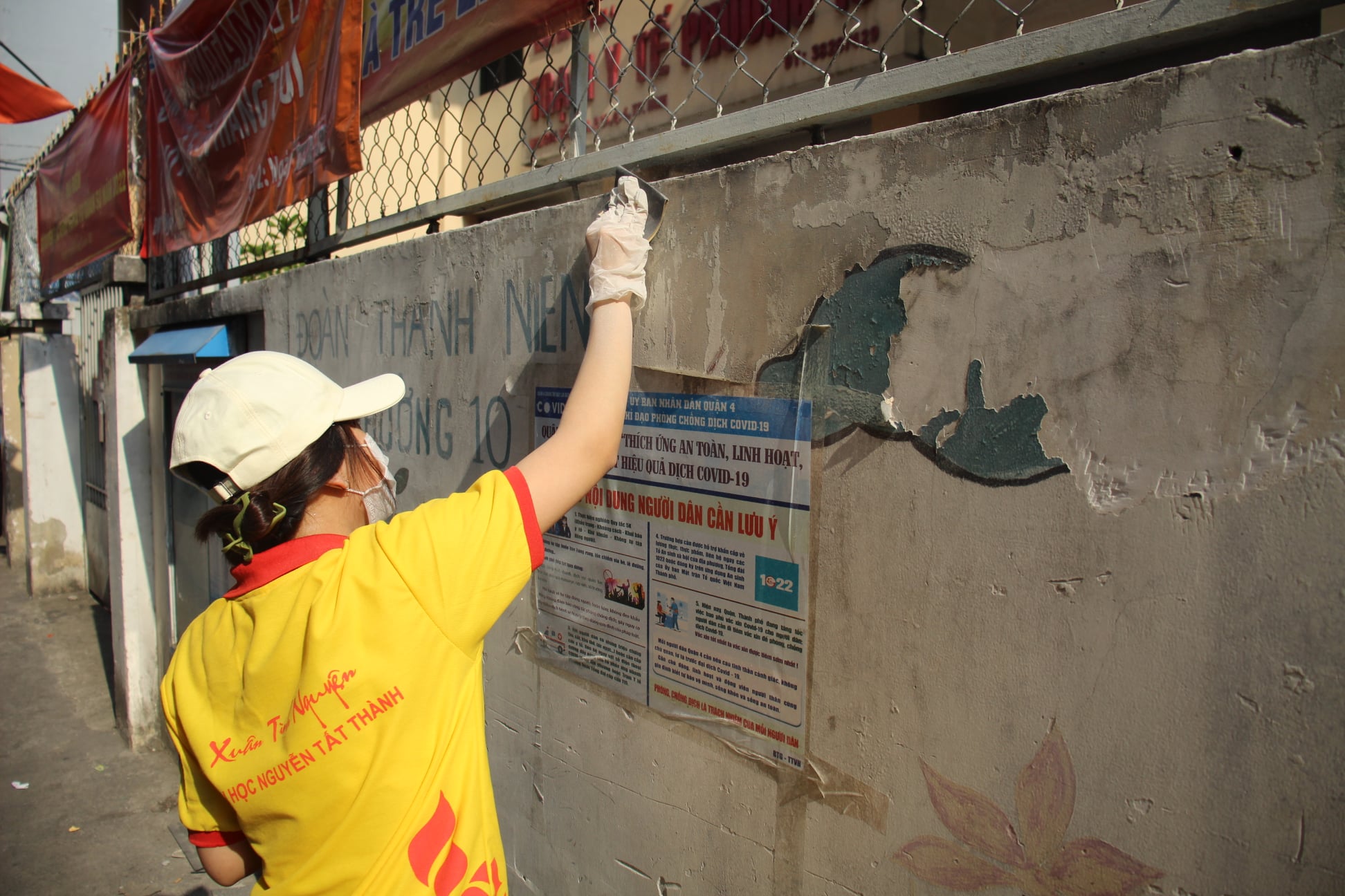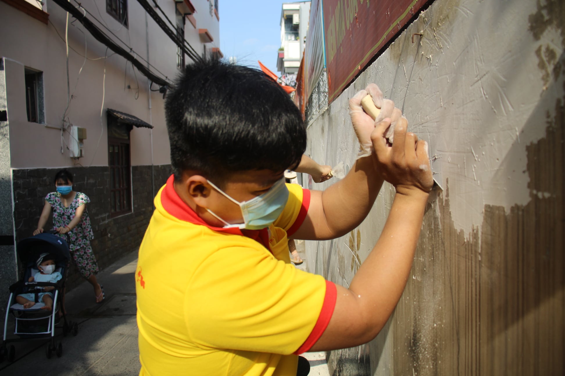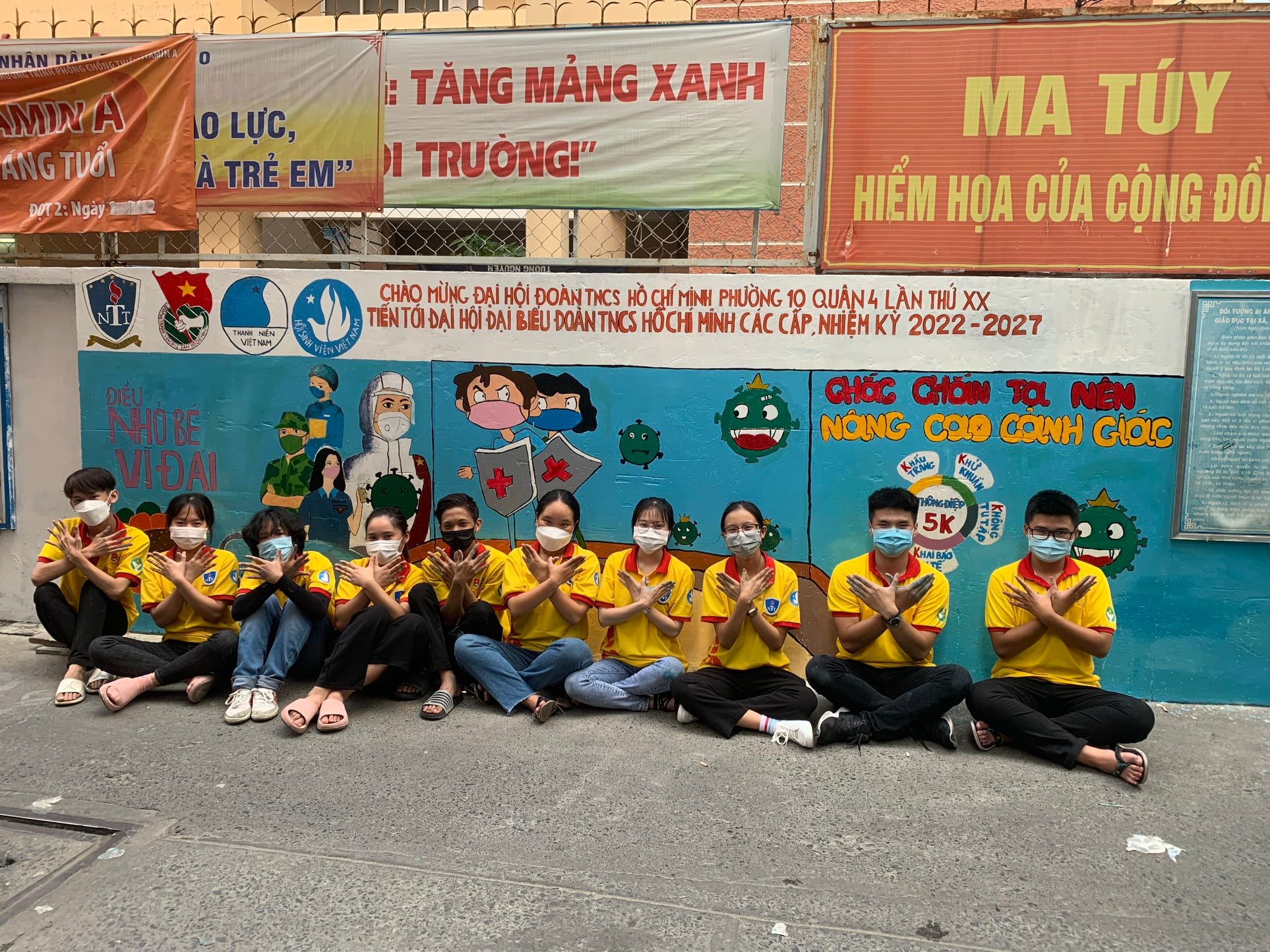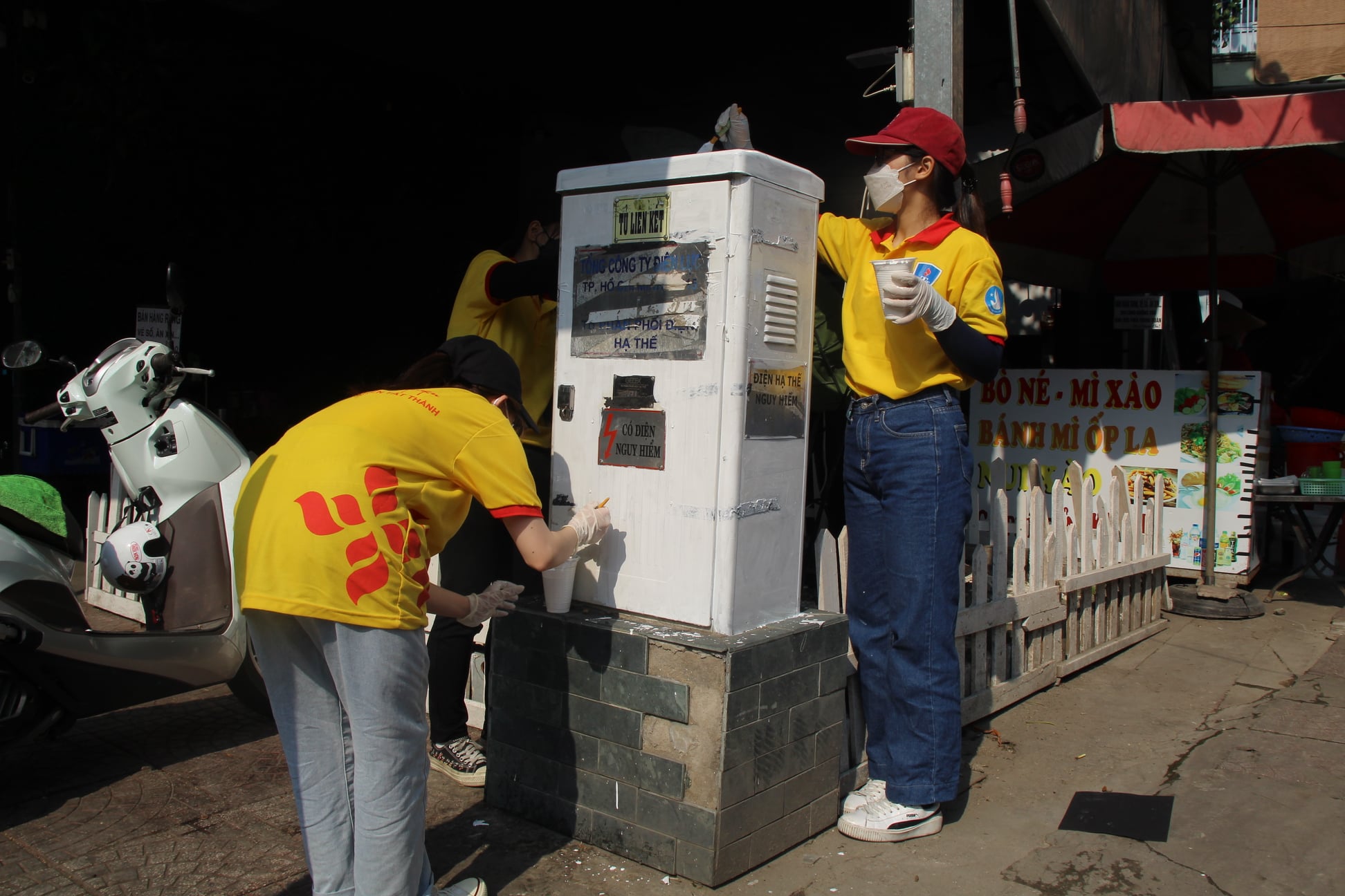Chiến sĩ Xuân tình nguyện NTTU đã triển khai hoạt động tại Phường 10 – Quận 4 từ ngày 08/01/2022 đến ngày 10/01/2022 với các nội dung thực hiện bôi xóa biển quảng cáo sai quy định, sơn vẽ lại các trụ điện trên tuyến đường Vĩnh Khánh và vẽ tranh tuyên truyền trên mảng tường (4m x 2.5m).