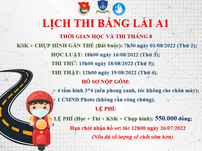 HẠN CHÓT ĐĂNG KÝ A1 - THÁNG 08: Lúc 12h00' ngày 26/07/2022 (tuy nhiên, có thể sớm hơn nếu đủ số lượng thí sinh đăng ký).