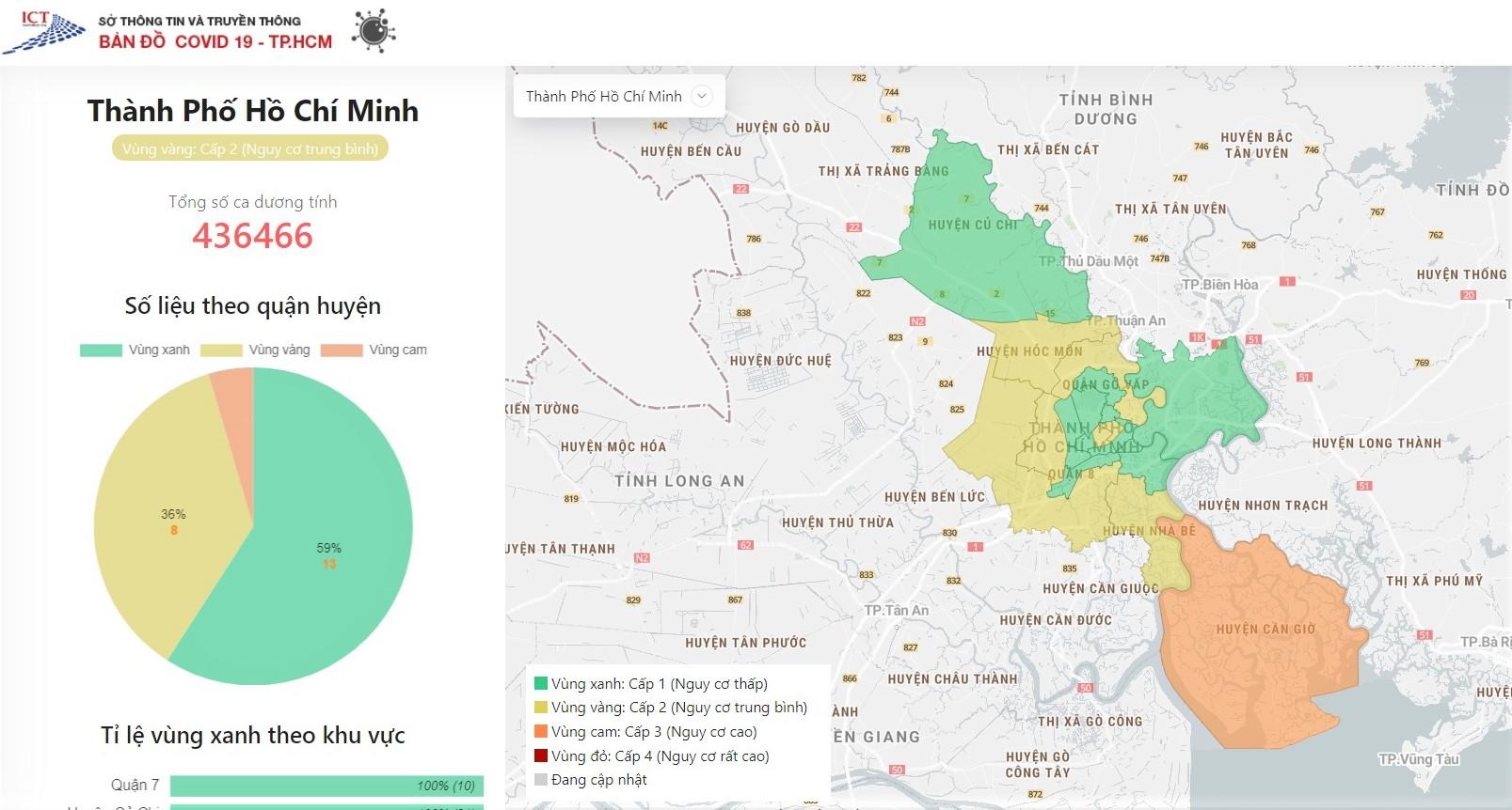 Bản đồ Covid-19 trên địa bàn TP.HCM có nhiều thay đổi so với tuần trước khi số địa bàn nguy cơ dịch bệnh cấp độ 2 tăng lên trong khi số địa bàn cấp độ 3 giảm xuống.