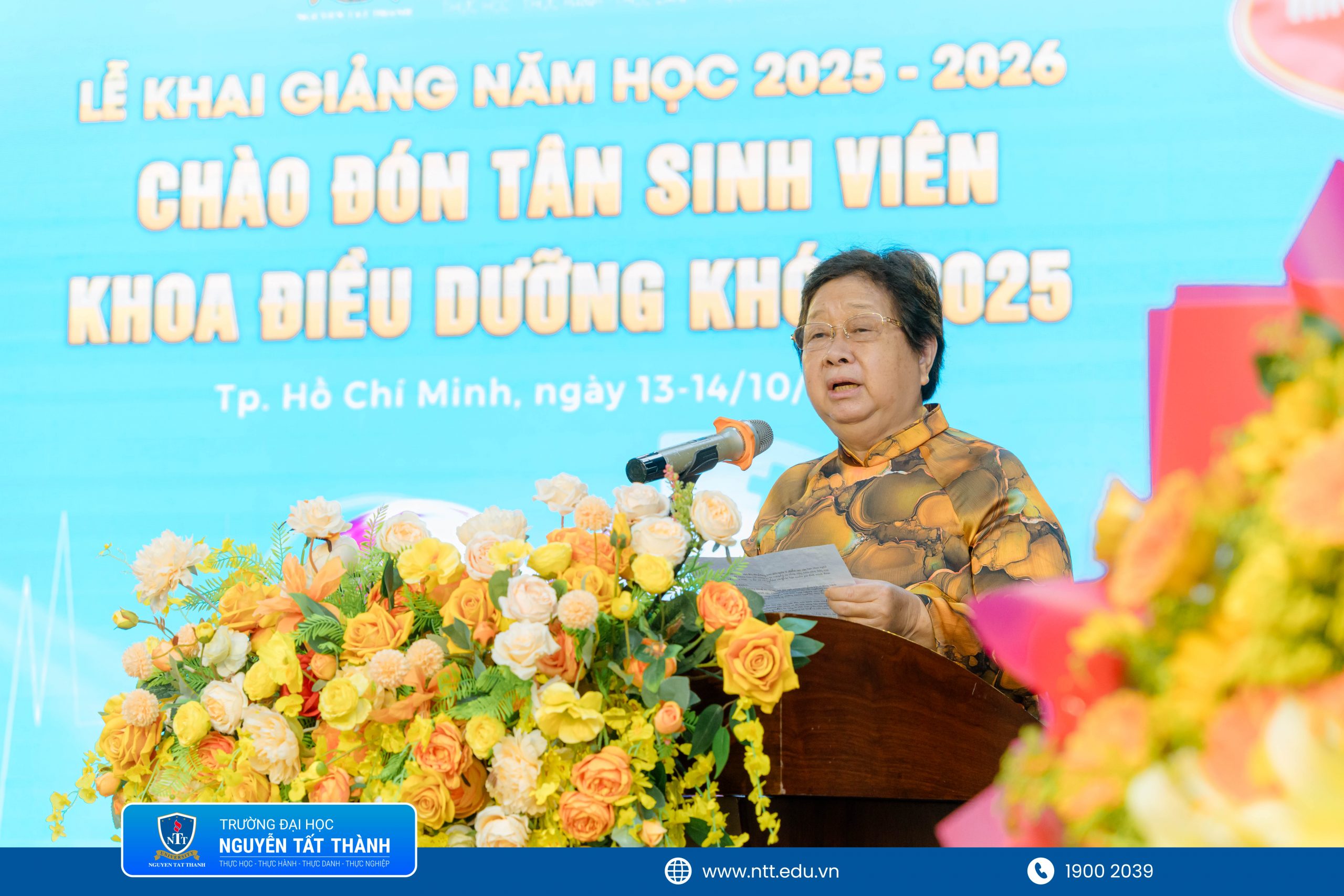 Gửi lời chào mừng đến các tân sinh viên, TS. Trần Thị Châu chia sẻ, chọn ngành Điều dưỡng là đã chọn một nghề cao quý, không chỉ là chăm sóc thể chất mà còn là chăm sóc tâm hồn, là chia sẻ và đồng hành cùng người bệnh trong những khoảnh khắc khó khăn nhất của cuộc đời họ. Tại khoa Điều dưỡng Trường ĐH Nguyễn Tất Thành, không chỉ được trang bị kiến thức chuyên môn sâu rộng, kỹ năng nghề nghiệp hiện đại mà tân sinh viên còn được rèn luyện tư duy phản biện, khả năng nghiên cứu và tinh thần hội nhập quốc tế – những yếu tố quan trọng để trở thành điều dưỡng viên chuyên nghiệp trong kỷ nguyên y học 4.0.