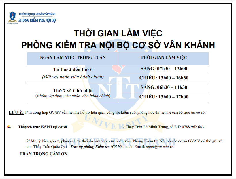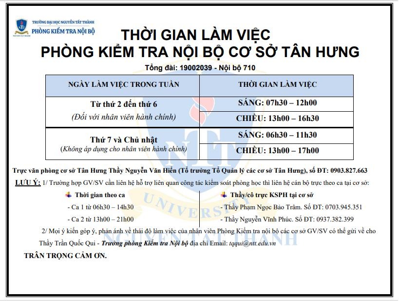 - Nhấn 710 để liên hệ với Phòng Kiểm tra Nội bộ cở sở 458/3F Nguyễn Hữu Thọ, Phường Tân Hưng, TP. HCM