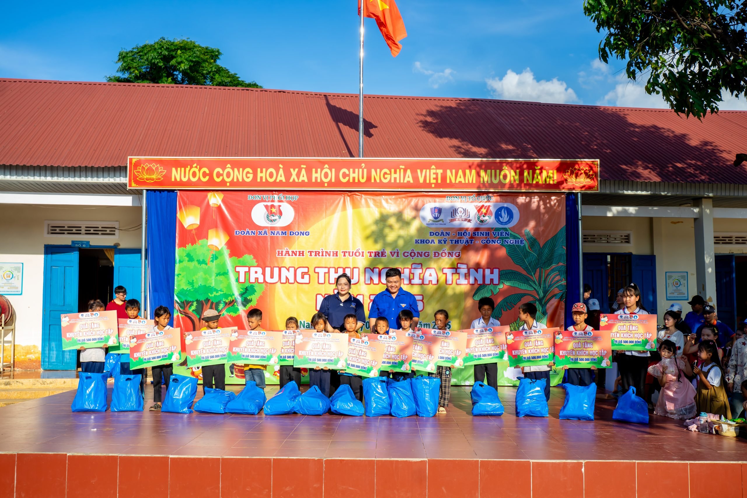 Bên cạnh đó, các đoàn thiện nguyện Trường ĐH Nguyễn Tất Thành cũng đã trao tặng 245 suất học bổng, quà tặng khuyến khích học tập với tổng giá trị hơn 120 triệu đồng. Những phần quà ý nghĩa này không chỉ là sự hỗ trợ vật chất mà còn là nguồn động viên tinh thần to lớn, giúp các em thêm tự tin, nuôi dưỡng ước mơ học tập và phấn đấu vươn lên. Qua đó, hoạt động còn góp phần lan tỏa tinh thần tương thân tương ái, khơi dậy ý thức trách nhiệm xã hội trong mỗi đoàn viên, sinh viên Trường ĐH Nguyễn Tất Thành.