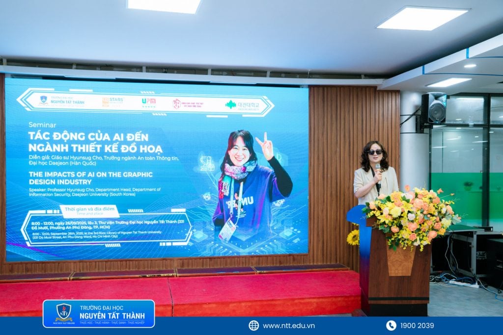 NTTU – Trong bối cảnh cách mạng công nghệ 4.0 đang diễn ra mạnh mẽ, trí tuệ nhân tạo (AI) không còn là khái niệm xa lạ mà đã trở thành một phần tất yếu trong đời sống, kinh tế và nghệ thuật đương đại. Nhằm tạo cơ hội để sinh viên tiếp cận những xu hướng học thuật mang tầm quốc tế, vừa qua, Khoa Kiến trúc – Nội thất – Mỹ thuật ứng dụng Trường ĐH Nguyễn Tất Thành đã tổ chức thành công buổi seminar “Tác động của AI đến ngành Thiết kế đồ họa” thu hút sự quan tâm của đông đảo sinh viên