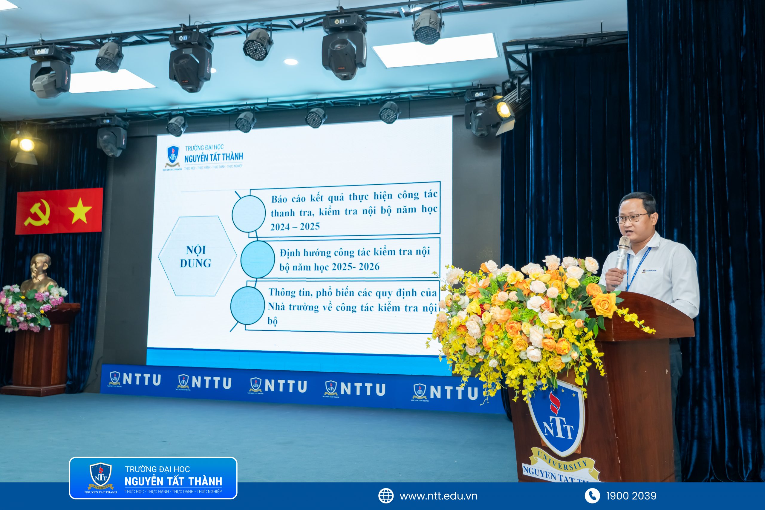 TS. Trần Ái Cầm, Hiệu trưởng Trường ĐH Nguyễn Tất Thành, chủ trì Hội nghị, nhấn mạnh định hướng chiến lược: công tác kiểm tra nội bộ phải chuyển mình sang “Phòng ngừa – Hỗ trợ – Đồng hành”, tạo nền tảng vững chắc cho quản trị đại học minh bạch và bền vững